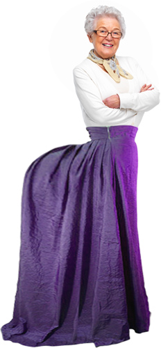 St. Valentine’s Day arrived and Granny very carefully climbed into her large, inflated, structured skirt. Looking at herself in the mirror, the rear of the skirt stuck out a good four feet, which made Granny tilt slightly forward. She could see how her balance was compromised so she took each step carefully and made sure to wear her Life Alert emergency pendant. Thinking twice, she even checked her purse to ensure her Life Alert emergency HELP phone was in her pocketbook, just in case she lost her balance while out and about she could call for help.